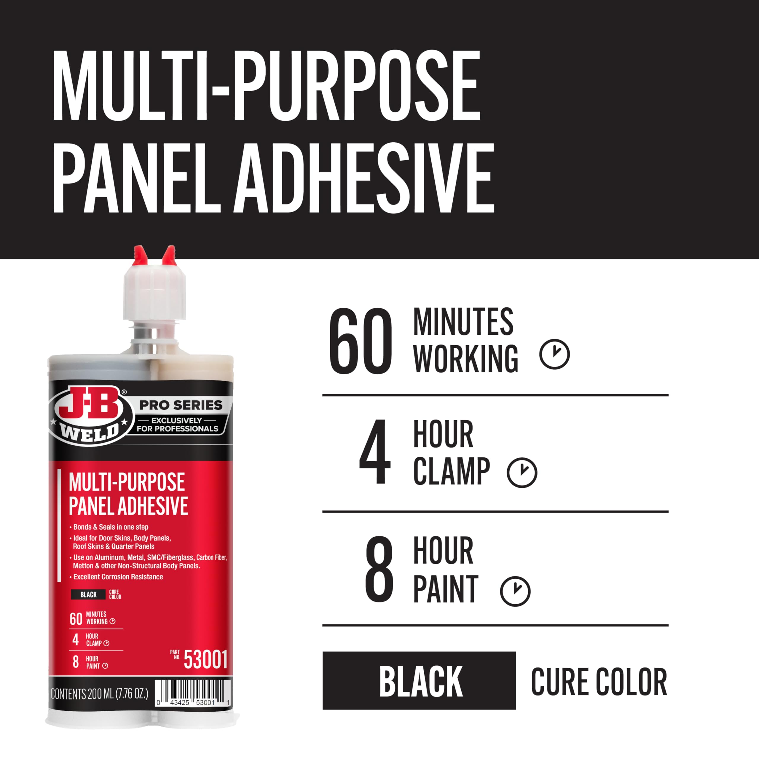 - J-B Weld Pro-Series Panel Adhesive #53001 is a 2-part epoxy adhesive designed to bond steel, aluminum, SMC and fiberglass body panels.